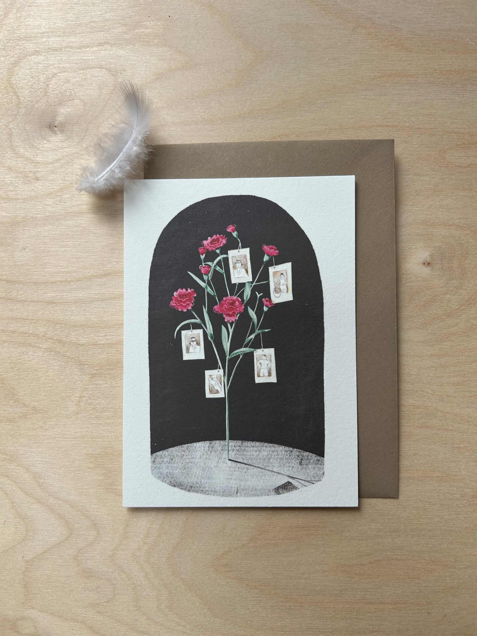 'Mogen alle mooie herinneringen je troost bieden' is wat dit takje met anjers wil vertellen. Stuur het naar vrienden of familie met verdriet en schrijf zelf een mooie herinnering op het kaartje.